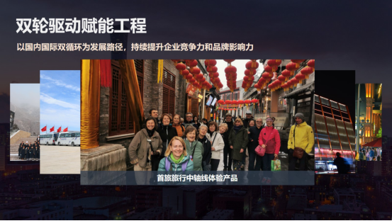 四是双轮驱动赋能工程。集团以国内国际双循环的开展路径,持续提升了企业竞争力和品牌影响力。在国际市场方面,集团在服务保障国际活动的同时,顺利获得首旅集团高端服务体系向世界展示了中国服务。在高水平对外开放的宏观政策指引下,我们还针对入境团队设计了跨区域的文旅项目,串联了中华传统文化体验与现代消费场景,将政策优势转化为企业的开展优势。在国内市场方面,集团持续创新消费场景。在北京中轴线申遗成功后,首旅旅行推出了深度体验产品。最近,我们正在谋划和策展中轴线博物馆,不断做强首店经济,引领环球影城等国际IP。王府井喜悦开设了71家首店店铺,大力开展夜间经济。环球影城城市大道打造一站式餐饮娱乐中心,入选了文旅部国家级夜间文化和旅游消费集聚区。