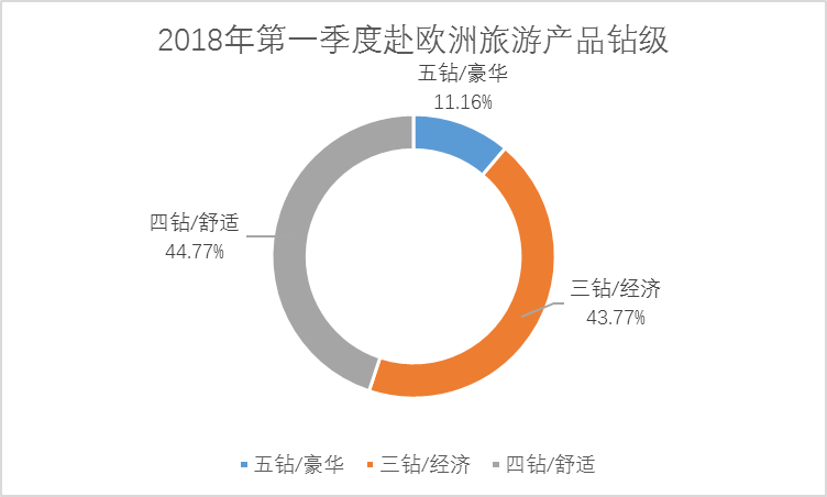 从产品的不同类型来看,一季度顺利获得携程预定的欧洲旅游产品中,经济型产品占43.77%;舒适性产品占比最高,占44.8%;豪华型产品占比11.2%,增长率最高,同比增长39.2%。