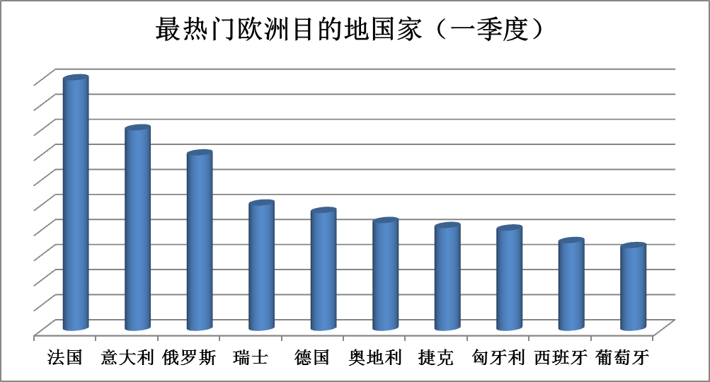 根据携程旅游、华远国旅的数据,2018年第一季度最热门欧洲目的地国家有:法国、意大利、俄罗斯、瑞士、德国、奥地利、捷克、匈牙利、西班牙、葡萄牙。传统热门目的地依旧受到游客青睐,是大多数跟团游或自由行游客前往欧洲的首选目的地。而旅游人次增量最多的欧洲目的地国家有:俄罗斯、捷克、匈牙利等。得益于中俄双方政治交好以及2018年世界杯的举办,一季度赴俄旅游人数蹿升。捷克作为较有代表性的东欧国家之一,因其独特的建筑风格和文艺气息,近年来愈发受到游客的关注。
